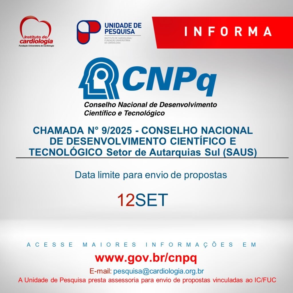 Voltar Para Notícias CHAMADA N° 9/2025 – CNPq Setor de Autarquias Sul (SAUS) até 12/09/2025 CHAMADA N° 9/2025 – CNPq Setor de Autarquias Sul (SAUS) até 12/09/2025 08/06 Compartilhe Acesse a chamada ao edital Voltar Para Notícias Próxima notícia