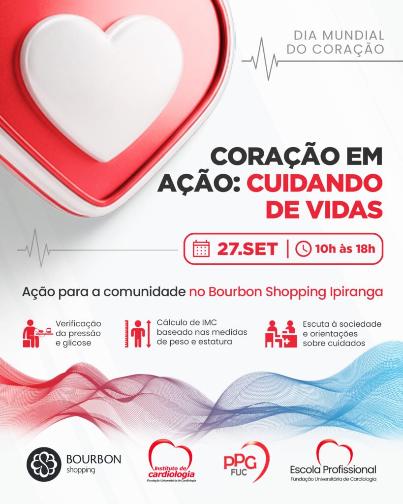 No dia 27 de setembro, acontece a 3ª edição da ação “Coração em Ação: cuidando de vidas”, que tem como objetivo levar informação, cuidado e conscientização sobre a saúde cardiovascular ao público em geral.